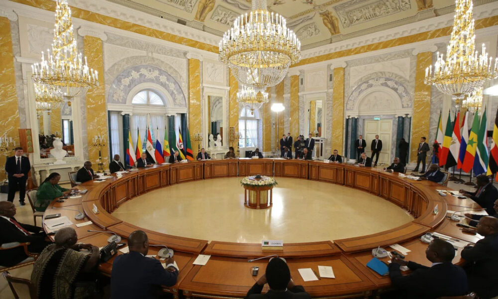 Putin opened talks the next day with representatives of Senegal, Egypt, Zambia, Uganda, Congo Republic, Comoros and South Africa in a palace near St. Petersburg by stressing Russia’s commitment to the continent, but after presentations from the Comoran, Senegalese and South African presidents, he challenged the assumptions of the plan, which were based on acceptance of internationally recognized borders even before the round of statements could go any further. Putin gave the delegation a list of reasons why he believed many of their proposals were misguided, putting a damper on a plan already largely dismissed by Kyiv.