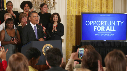 U.S. President Barack Obama delivers remarks before signing an executive order banning federal contractors from retaliating against employees during an event in the East Room of...