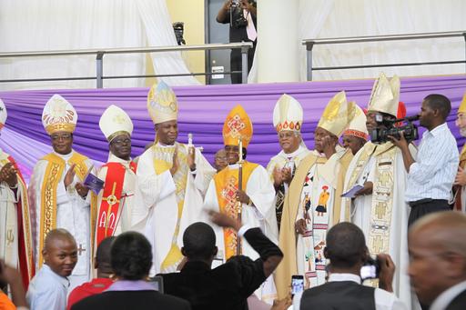 Anglican Church officials applaud Bishop Ellinah Wamukuoya (c) at the conclusion of her consecration as Bishop. PHOTO/File As the Church of England weighs whether it will...