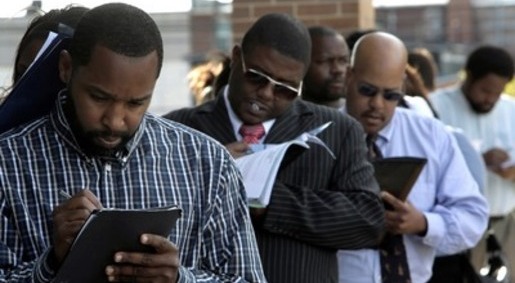 Job applicants fill out applications for positions at a new bar and restaurant in Detroit. PHOTO/Paul Sancya/AP African-American unemployment continued to rise despite an increase in...