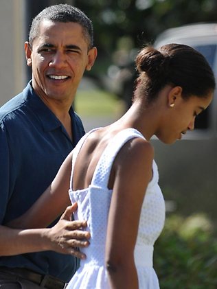 US President Barack Obama and his daughter Malia make their way into the chapel for Christmas service at Marine Corps Base Hawaii. AFP PHOTO/Mandel NGAN Source:...