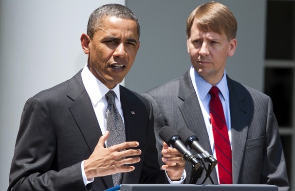 President Barack Obama annouces Richard Cordray (R) as his nominee to be the Director of the Consumer Financial Protection Bureau. PHOTO/UPI/Kevin Dietsch The Justice Department is...