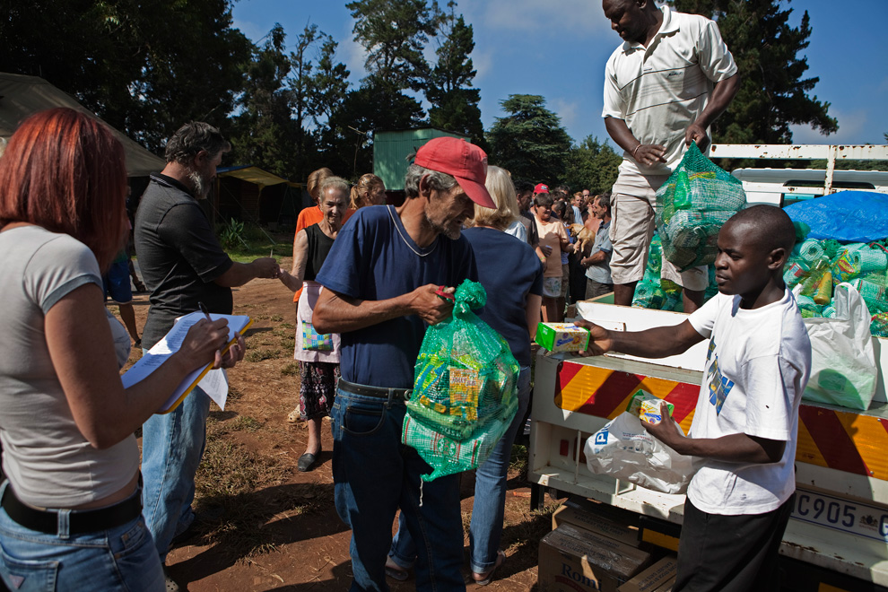 A man receives a monthly supply of food aid donated to residents of a squatter camp for poor white South Africans. (REUTERS/Finbarr O’Reilly) When stories are...