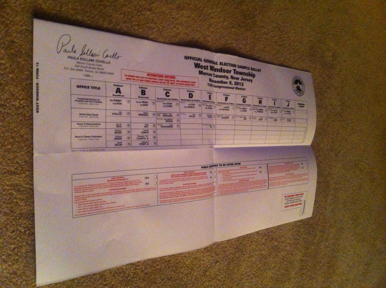 My Ballot Paper for November 6, 2012 On a cold evening here in Princeton, New Jersey – an evening where many people in America’s North East...