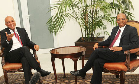 Haitian President Michel Martelly and former President Jean Bertrand Aristide at their previous meeting in 2011. PHOTO/File Haitian President Michel Martelly has held a private meeting...