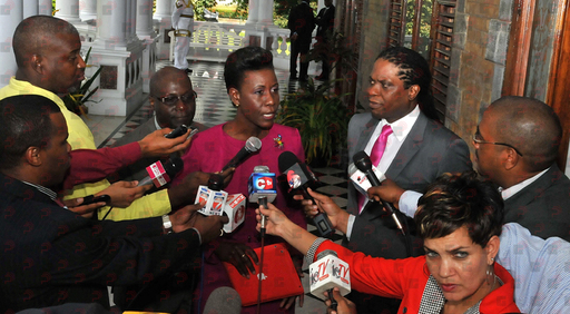 Newly sworn in Trinidad & Tobago Minister of Justice, Christlyn Moore (C) speaks to media. PHOTO/GoTT Christlyn Moore has been sworn in as the new minister...