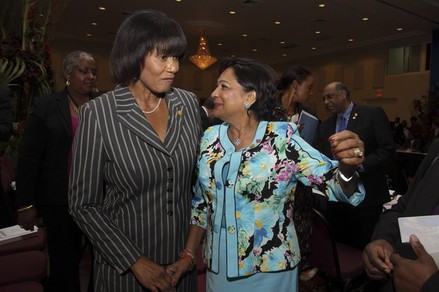 Jamaica’s Prime Minister Portia Simpson-Miller with Trinidad & Tobago’s Prime Minister Kamla Persad-Bissessar. PHOTO/Ranu Abhelakh/Reuters The Caribbean only two women heads of government Friday pledged to...