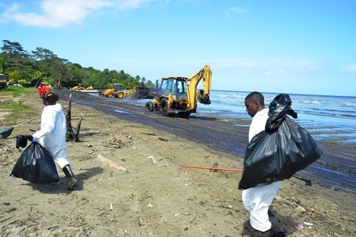 Cleaning crews working to clear up pollution resulting from oil spill. PHOTO/Trinidad Express The government of Trinidad & Tobago has announced increased security for energy installations...