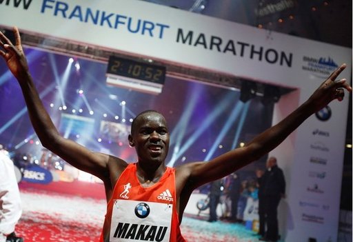 Kenya’s Patrick Makau crosses the finish line of the Frankfurt Marathon. PHOTO/AP World record holder Patrick Makau of Kenya won the Frankfurt Marathon in cold and...