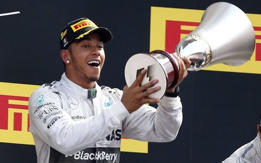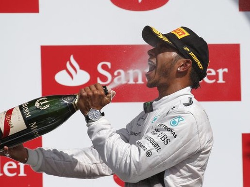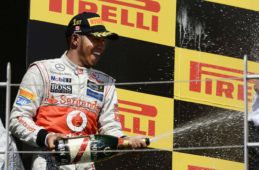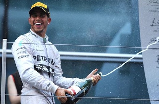 Lewis Hamilton toasts to his winning the British Grand Prix, Sunday July 6, 2014. PHOTO/ Lefteris Pitarakis/AP Lewis Hamilton won the British Grand Prix on Sunday...