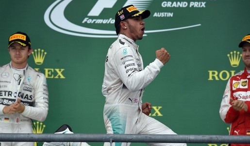 Lewis Hamilton joined the elite group of triple Formula One world champions on Sunday after winning a thrilling U.S. Grand Prix that kept the crowd on...