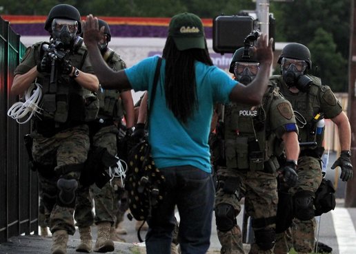 Heavily armed police in military gear advance towards an unarmed protester in Ferguson, Missouri. PHOTO/Jeff Roberson/AP U.S. President Barack Obama has ordered a review of the...