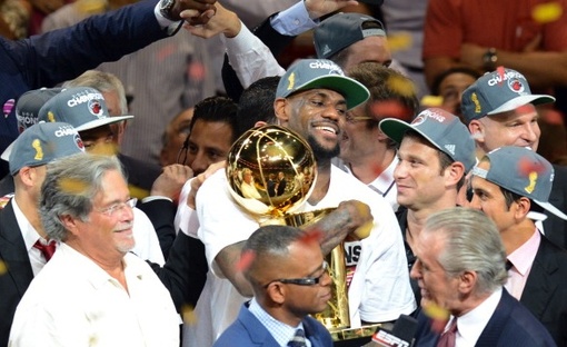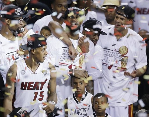 Victorious Miami Heat players including LeBron James (c), June 20 2013. PHOTO/Wilfredo Lee/AP LeBron James and Dwyane Wade have faced plenty of adversity together and the...
