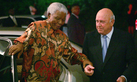 FW de Klerk welcomes Nelson Mandela to his 70th birthday celebrations, March 18 2006. PHOTO/Mike Hutchings/ Reuters Two former South African presidents bound together in the...