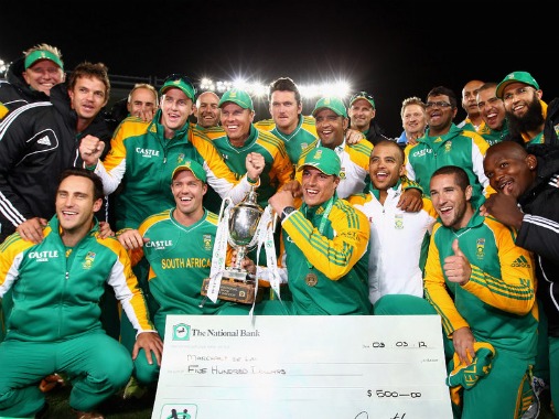 South Africa celebrate ODI series win over New Zealand. PHOTO/Cricket365 Marchant de Lange took four wickets as South Africa completed a 3-0 whitewash of New Zealand...