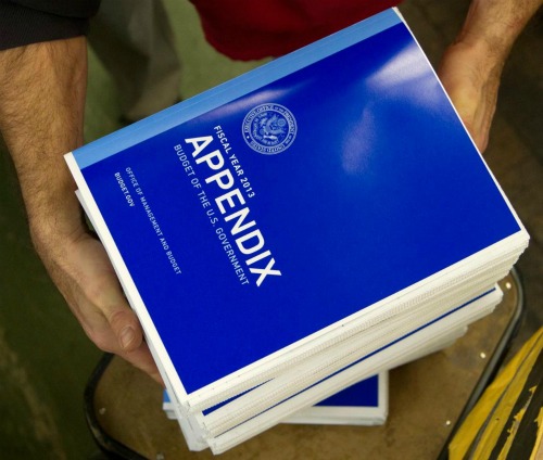 Copies of the a appendix of President Barack Obama’s fiscal 2013 federal budget. AP Photo/Manuel Balce Ceneta President Barack Obama’s new budget proposal will ask Congress...
