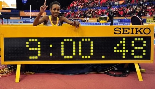Genzebe Dibaba of Ethiopia after winning the women’s indoor 2-mile race. PHOTO/Getty Images (Reuters) – Ethiopia’s Genzebe Dibaba ran the fastest indoor 2-mile ever as the...