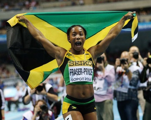 A jubilant Shelly-Ann Fraser-Pryce after winning the 60 meter final in Sopot, Poland, March 9 2014. PHOTO/Petr David Josek/AP Shelly-Ann Fraser-Pryce, Jamaica’s, freshly minted world indoor...