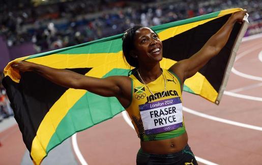 Jamaica’s Shelly-Anne Fraser-Pryce celebrates her second place finish in the women’s 200m final during the London 2012 Olympic Games at the Olympic Stadium August 8, 2012....