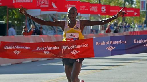 Dennis Kimetto crosses finish line of the Chicago Marathon. PHOTO/Andrew Nelles/AP (Reuters) – Dennis Kimetto and Rita Jeptoo led a Kenyan sweep in contrasting styles at...